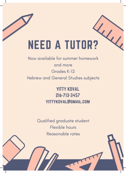 Please call if interested please call Shira 440.569.0341 (till 5 pm)