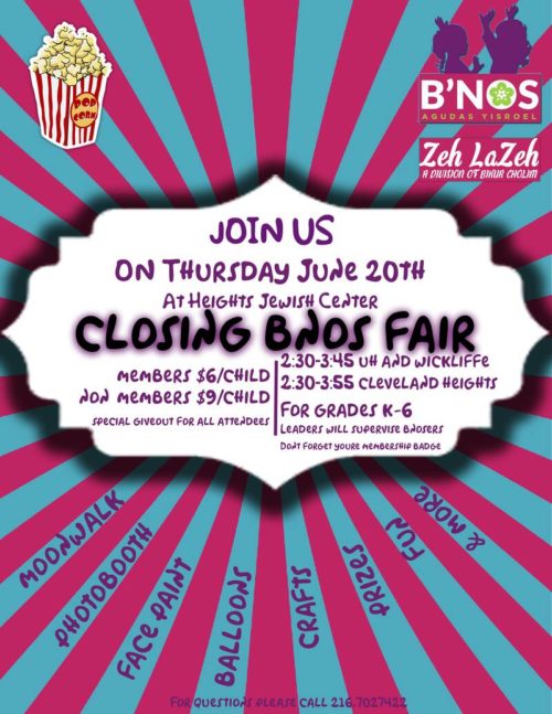 TODAY! Bnos Closing Event, Thursday, 6/20!