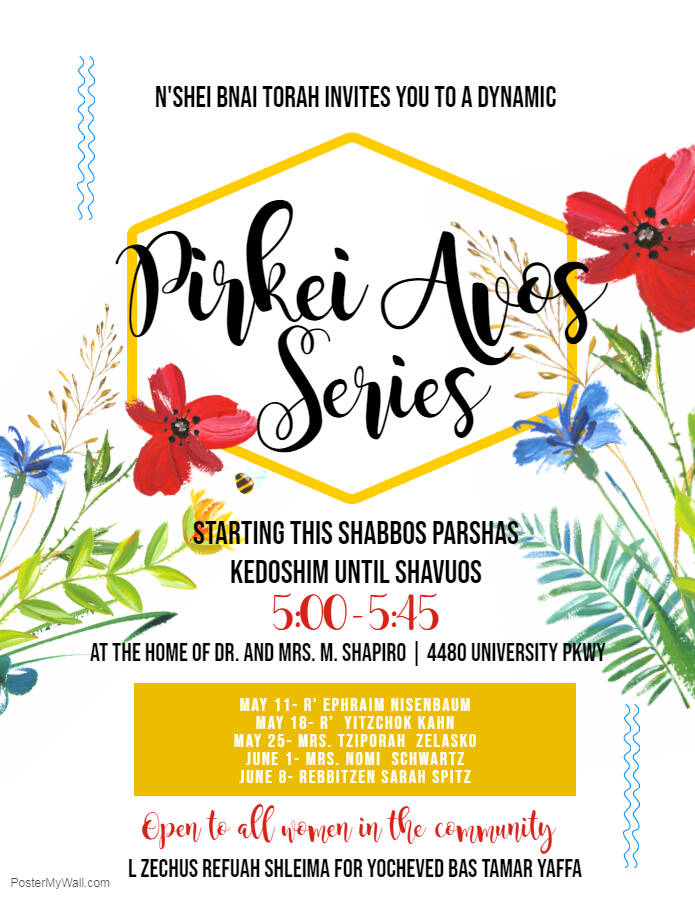 N’Shei Bnai Torah Women’s Pirkei Avos Shiur
