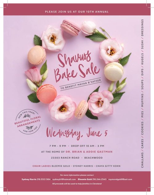 Matan B’Sayser 10th Annual Shavuos Bake Sale, Wednesday, June 5th