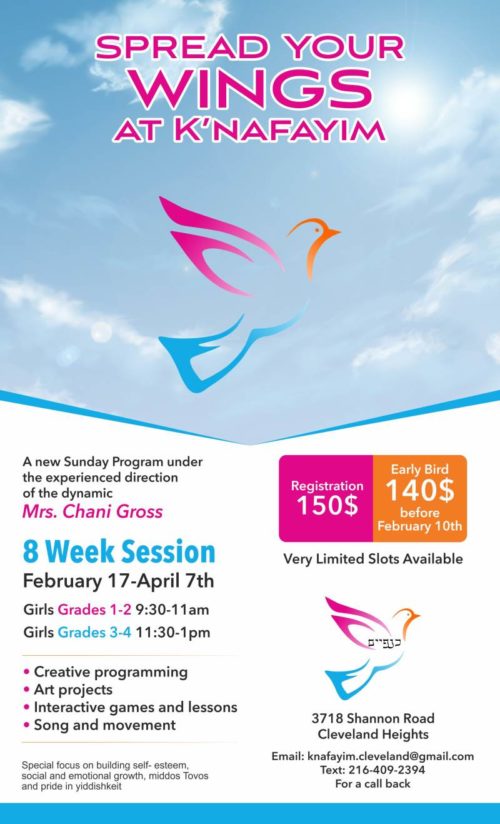K’nafayim Sunday Program for Girls With Mrs. Chani Gross! Sign Up Now!