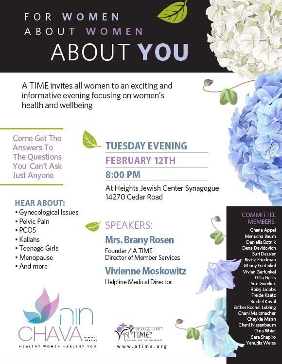 A TIME Invites You to An Evening of Awareness Focusing On Women’s Health and Wellbeing (For Women Only), Tuesday, February 12th