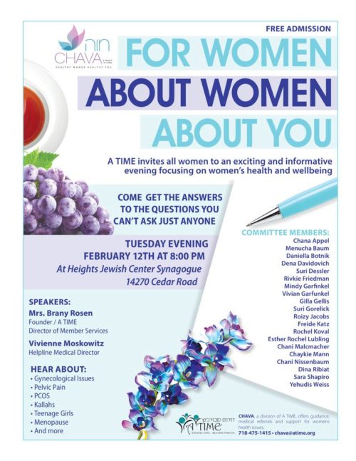 A TIME Invites You to An Evening of Awareness Focusing On Women’s Health and Wellbeing (For Women Only), Tuesday, February 12th