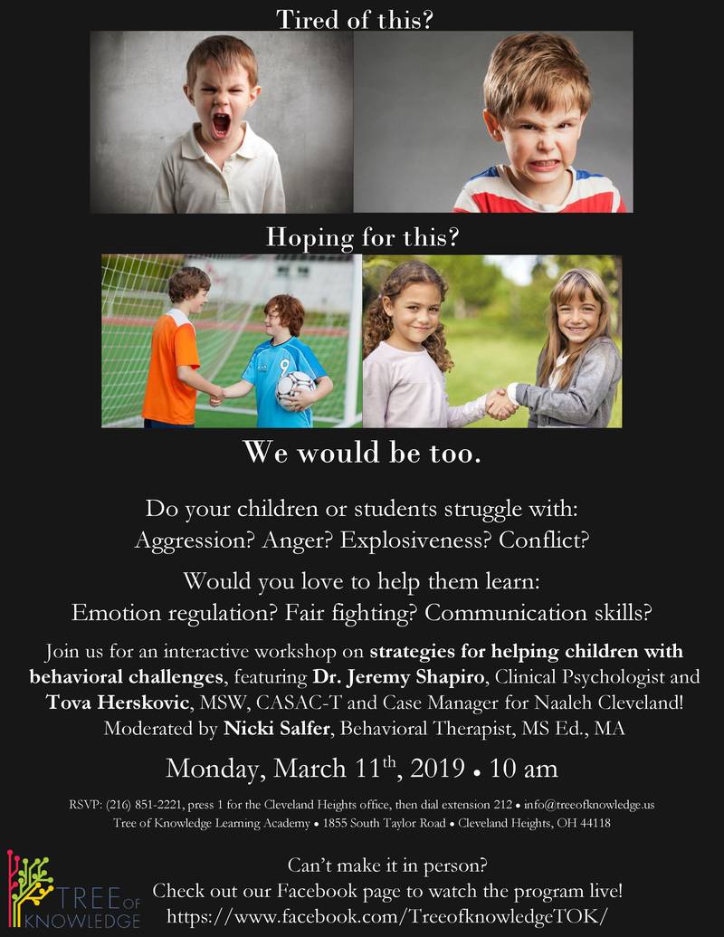Join Tree of Knowledge for “Strategies For Helping Children With Behavioral Challenges”, Monday, March 11th