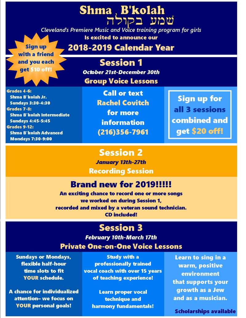 Shma B’kolah Girls’ Voice Class Starting Sunday October 21st. Sign Up Today!