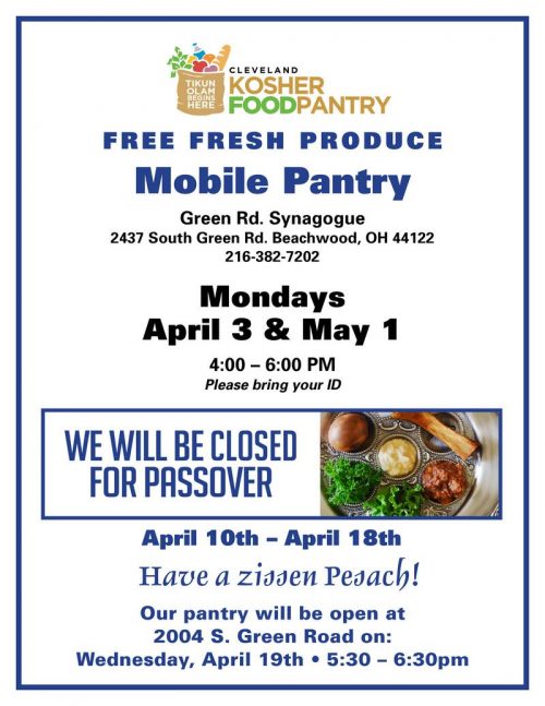 Kosher Food Pantry – Free Fresh Produce Distribution Monday Afternoon, April 3rd