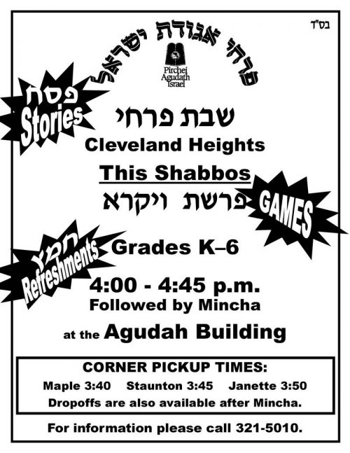 Agudah Pirchei – Shabbos Parshas Vayikra