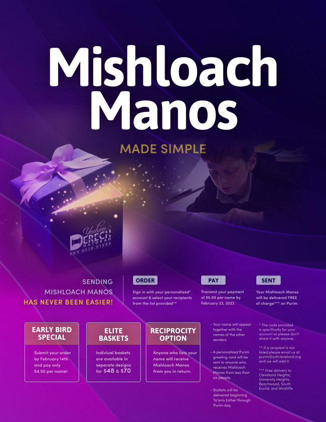 For your convenience we have multiple ways for you to place your Mishloach Manos order this year.