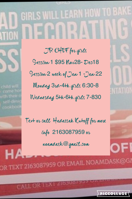 Jr. Chef Classes for Girls Starting Next Week! Few spots available!