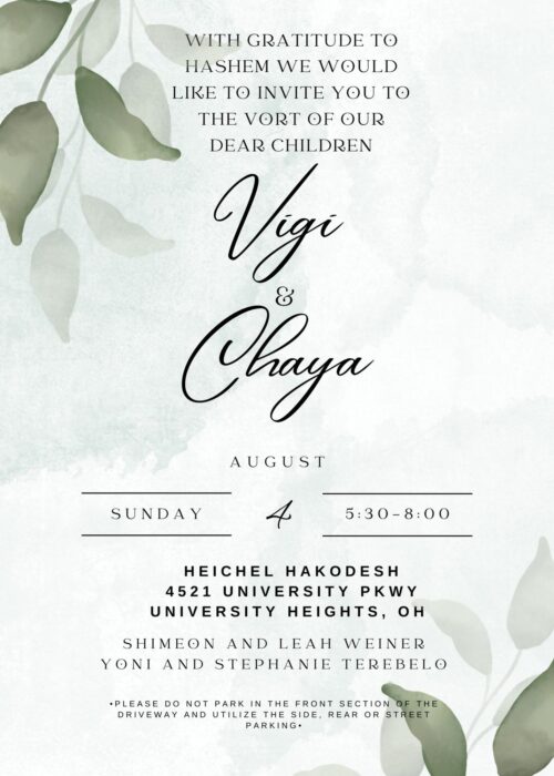 Mazal Tov! Weiner/Terebelo Vort Sunday!