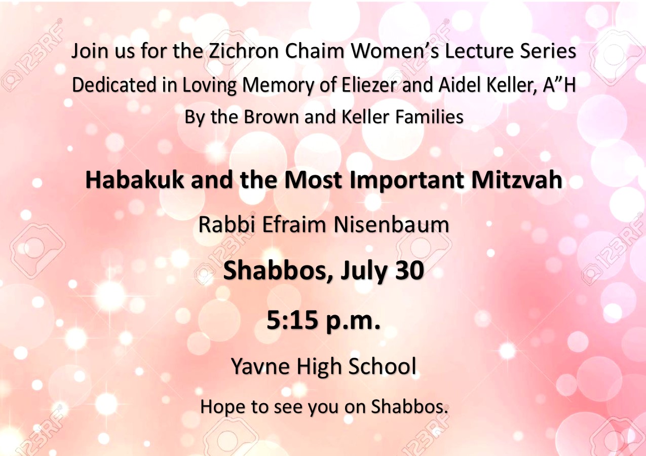 Zichron Chaim Women’s Lecture Series – Habakuk and the Most Important Mitzvah
