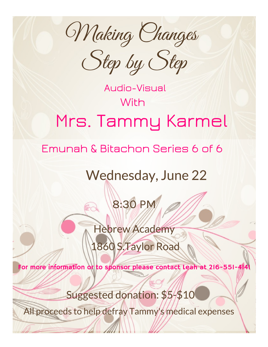 There will be Bnos in University Hts/Beachwood this Shabbos, Parshas Naso and next Shabbos Parshas Behaloscha. Please check mailing for details. Cleveland Hts had their last Bnos before Shavuos and will resume after Rosh Hashana. Wishing everyone a happy and healthy summer!