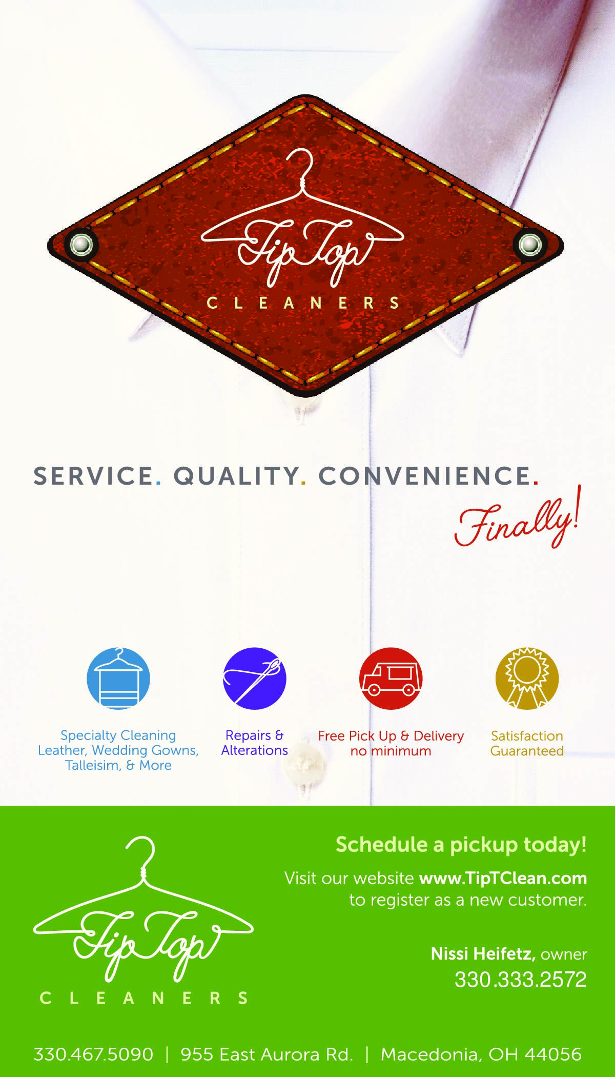 Call or text 330-333-2572, or email tiptcleaners@gmail.com