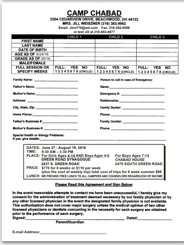For more info and for reservations please text or call 216.333.5922. All reservations must be made by 5/13/2016.  Please note: maximum capacity – 50 families. First come first serve! Last year rooms sold out before the deadline.