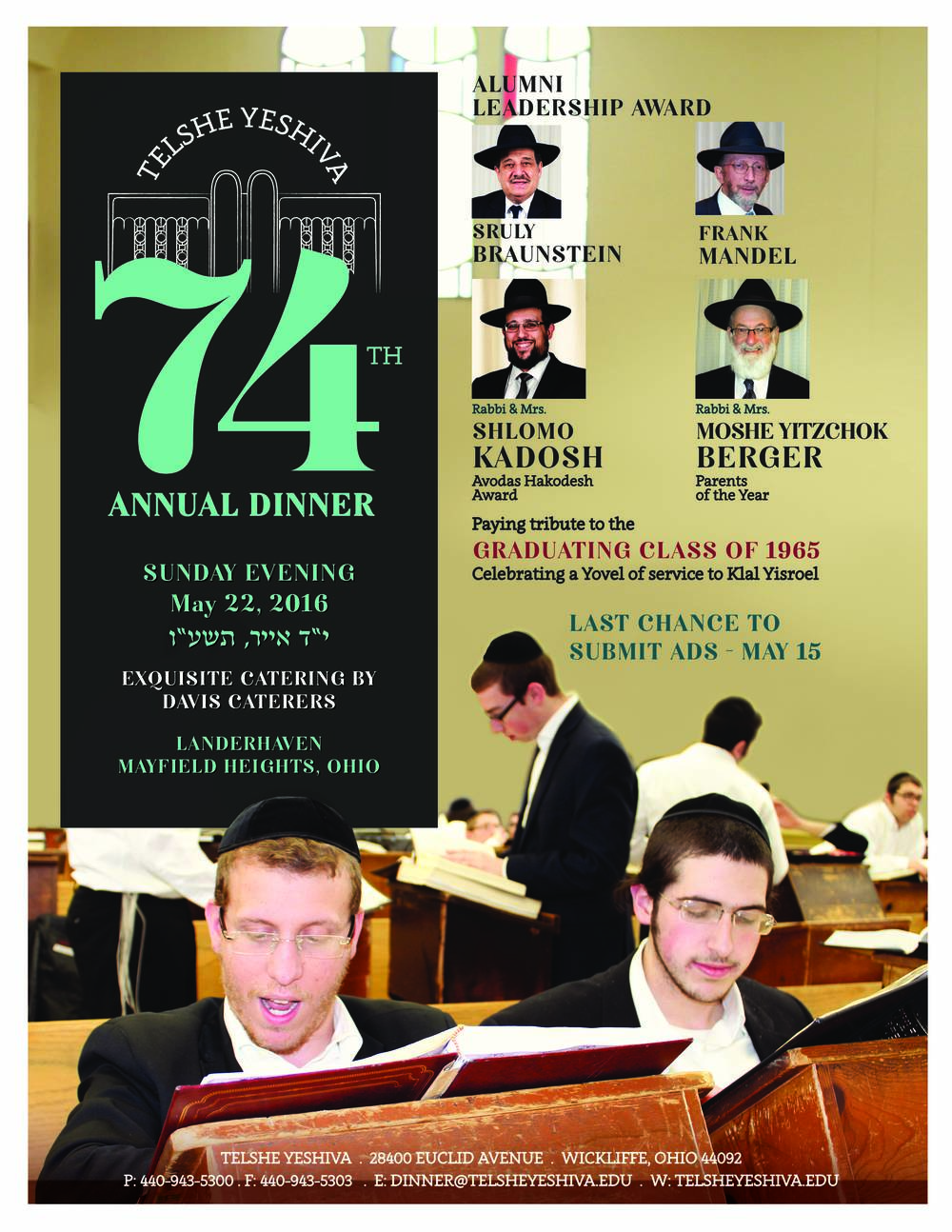 Telshe Yeshiva 74th Annual Dinner – May 22nd, 2016