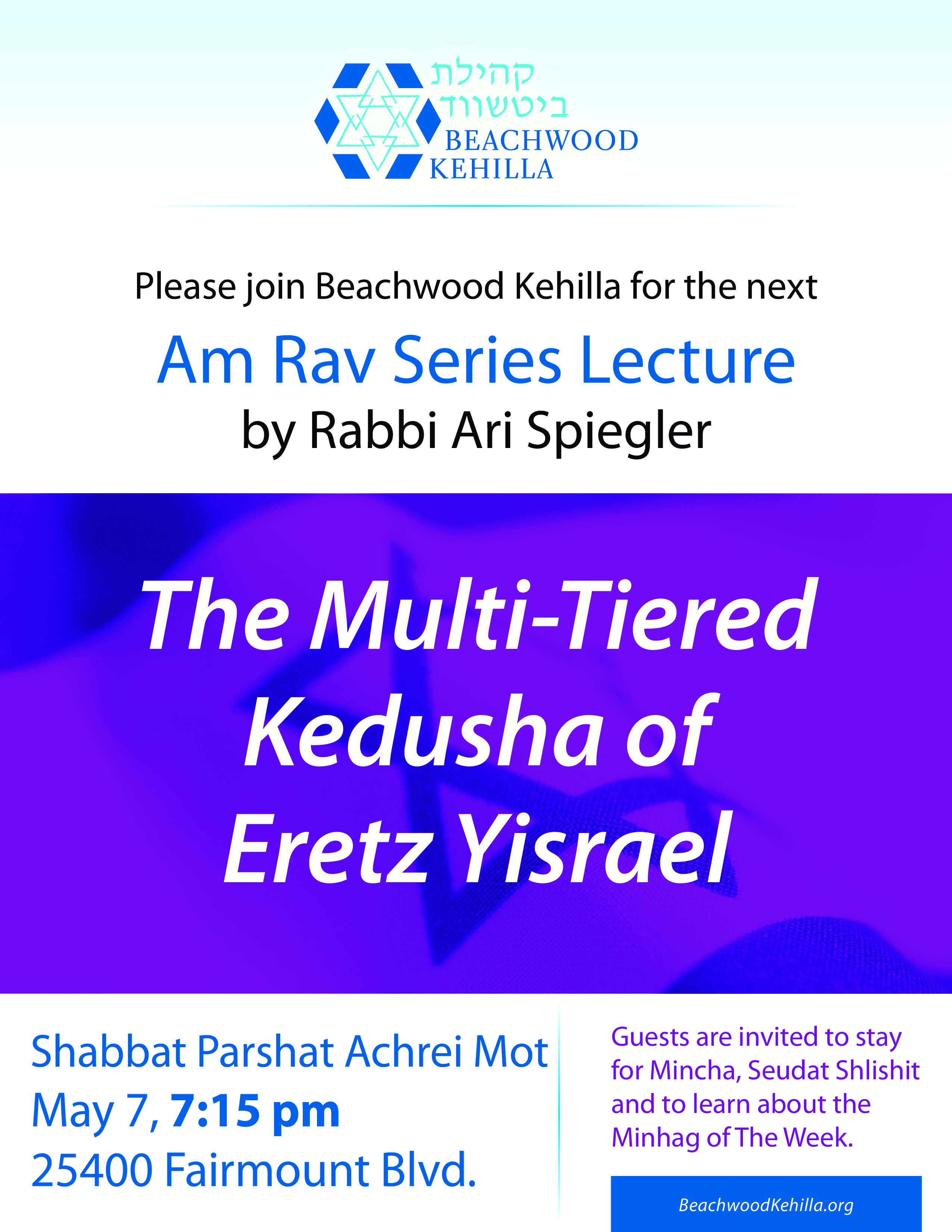 Beachwood Kehilla Am Rav Series Lecture – The Multi Tiered Kedusha of E”Y