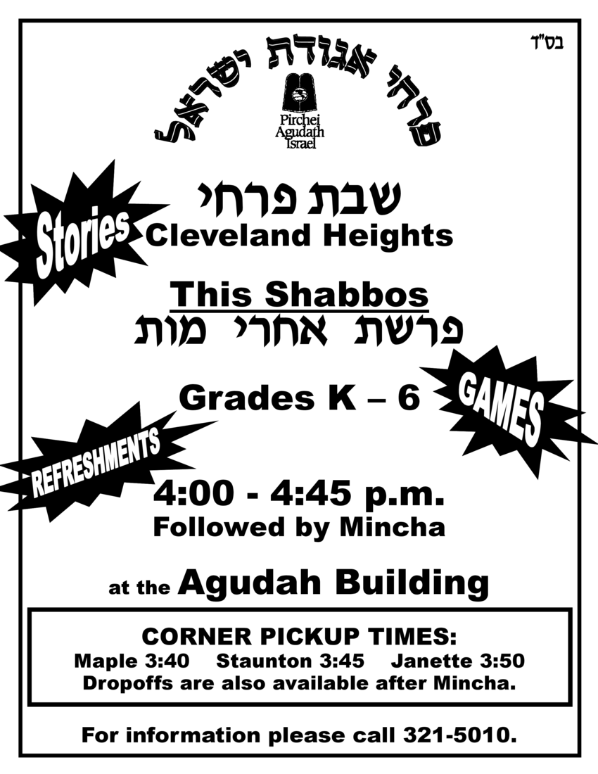 Agudath Israel Pirchei Shabbos – Acharei Mos