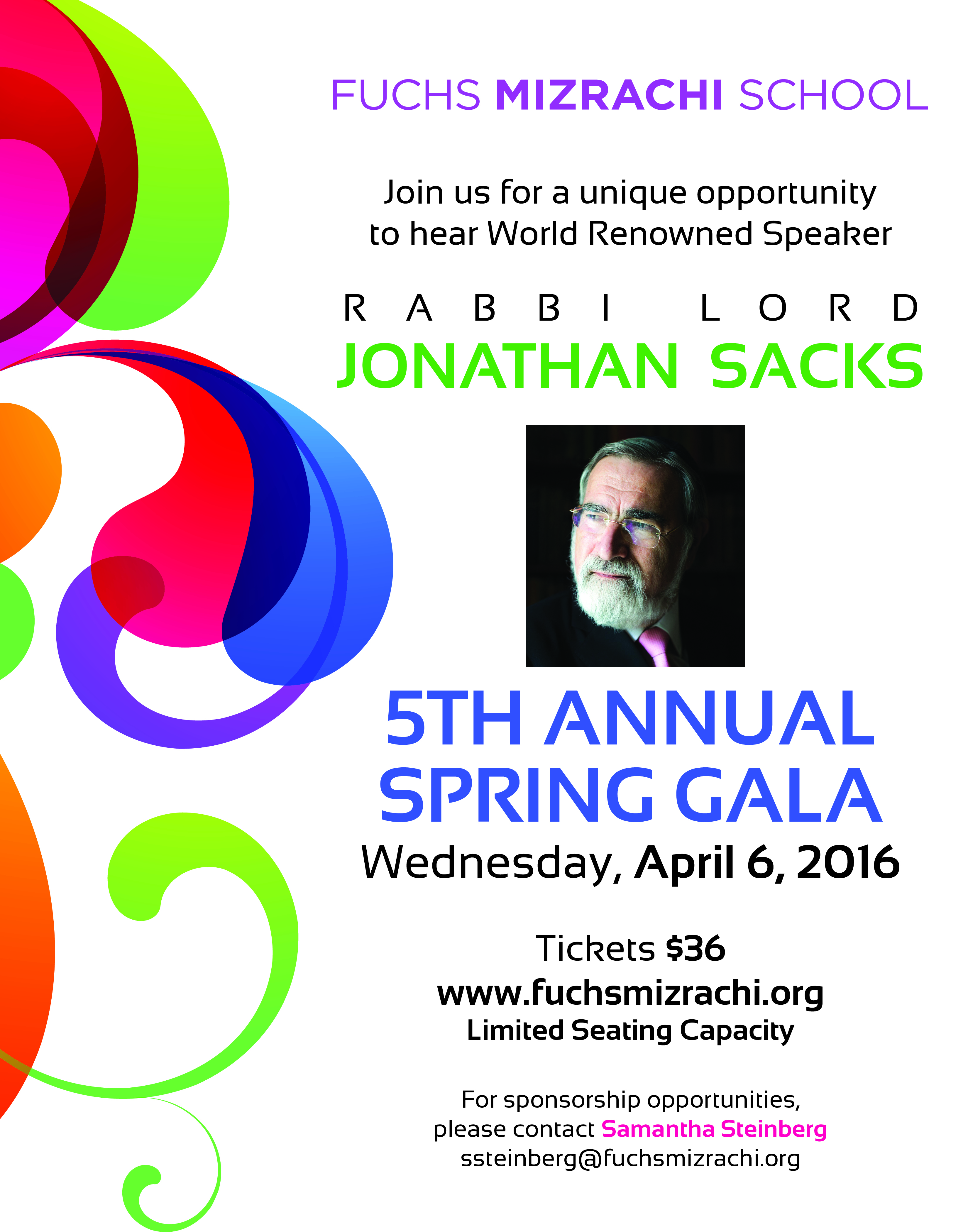 Fuchs Mizrachi School – Rabbi Lord Jonathan Sacks – 5th Annual Spring Gala