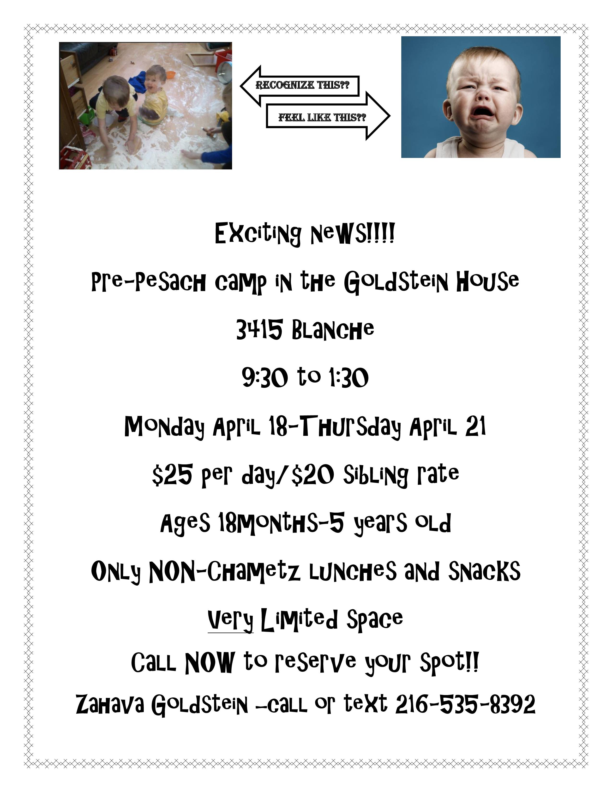 For more information and/ or to register please contact Esti Zidele at 216-371-1965 or text 845-642-9068.