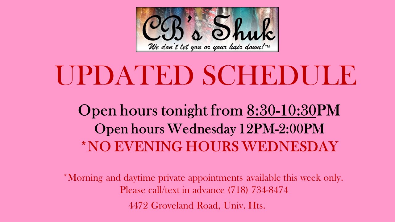 Yom Tov Hours at Head Shoulders Toes & Bows