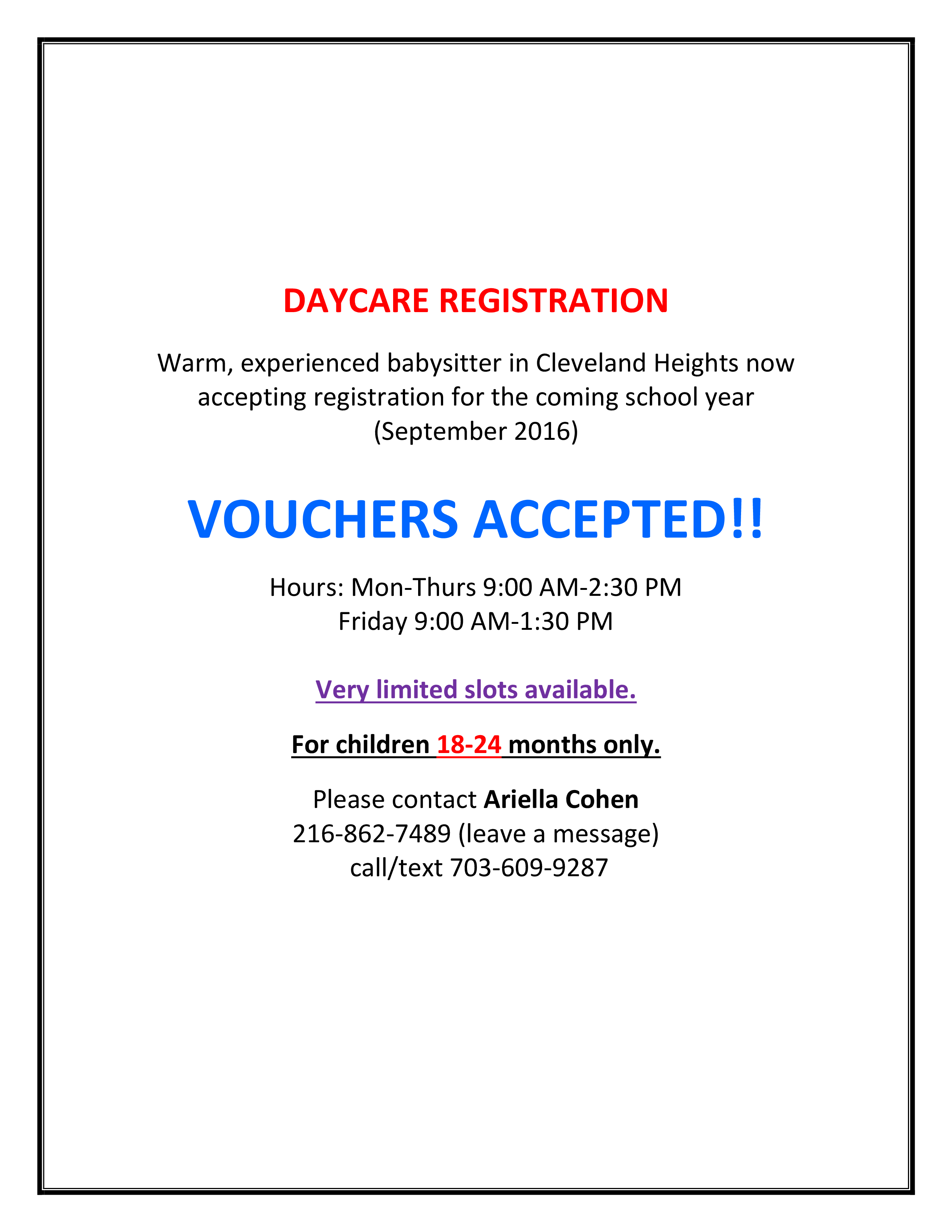 Place your order today by calling Shloimy Modes @ 216.397.9495 or for text messages only 216.401.7507