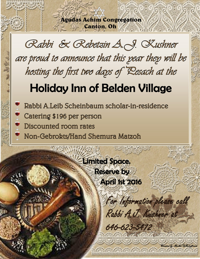 Rabbi and Rebetzin A.J. Kushner Hosting First Two Days of Pesach