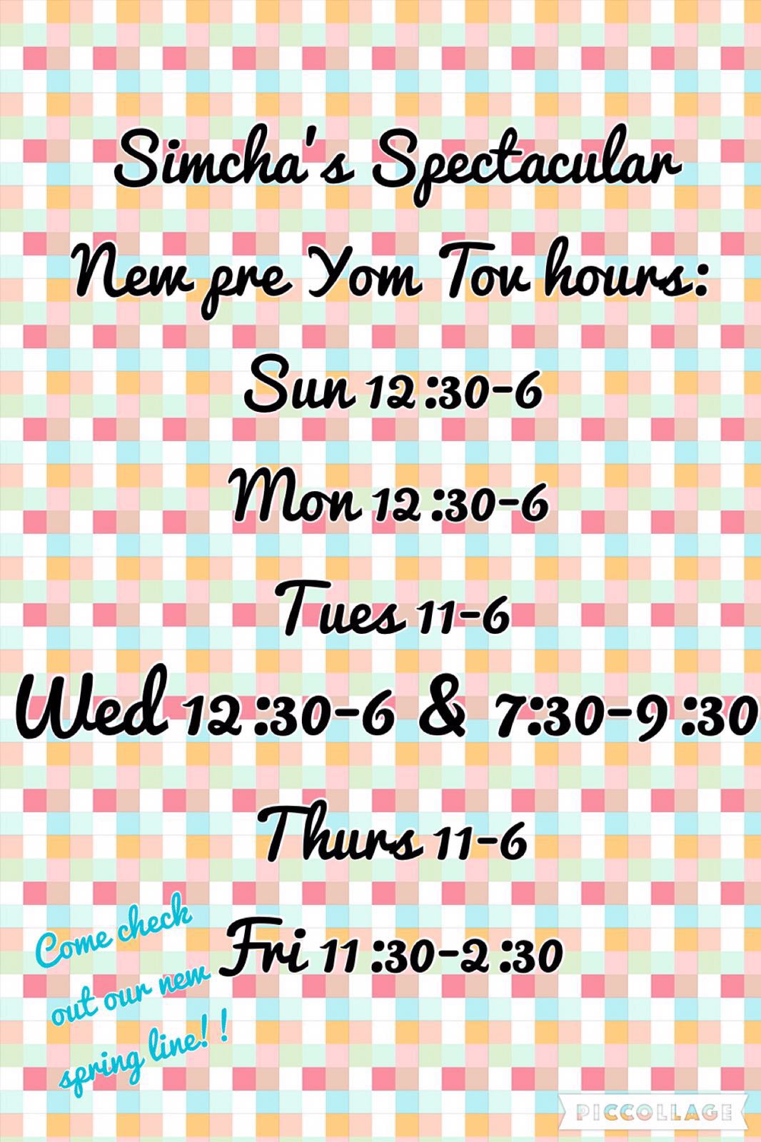 Simcha’s Spectaculars New Pre Yom Tov Hours