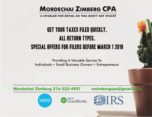 Mordechai Zimberg, CPA – Tax Returns Prepared Quickly Plus a Free Gift!