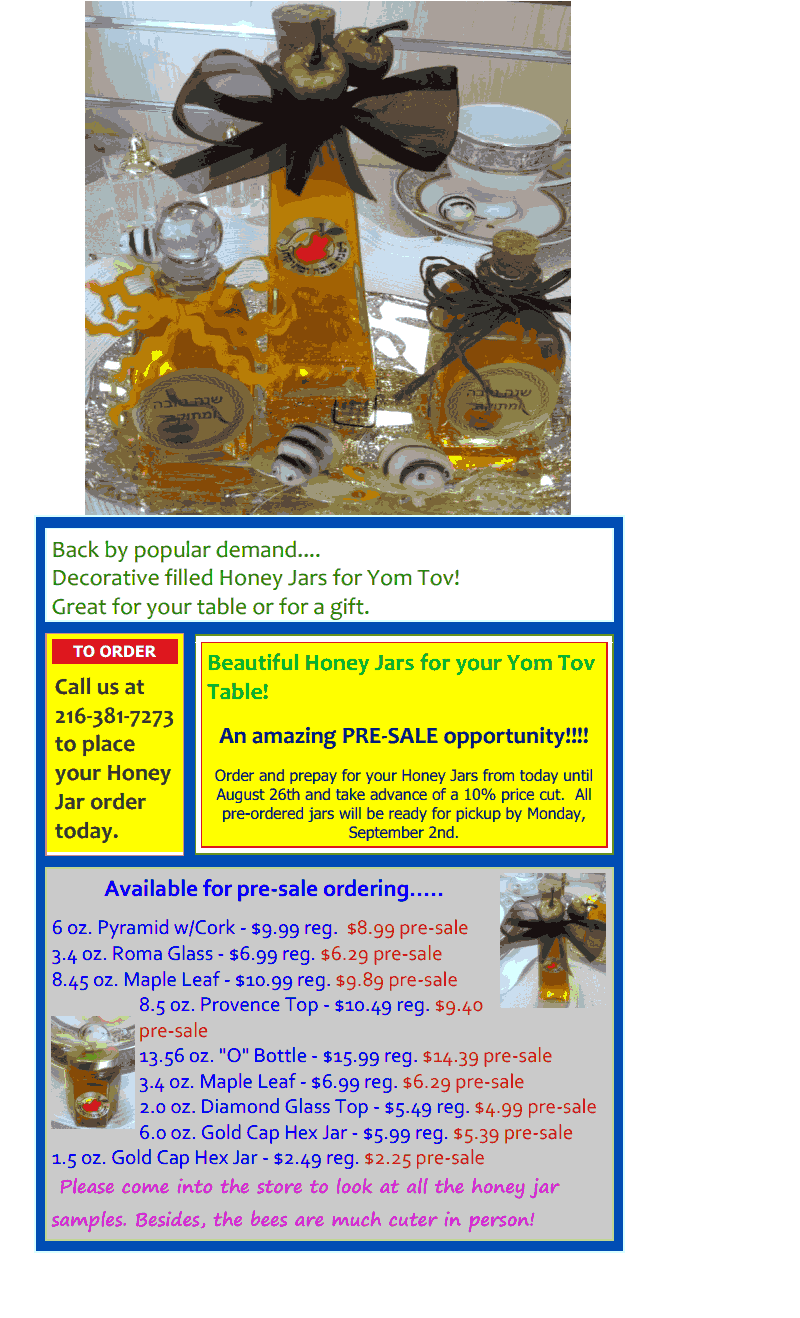 Blum’s – Decorative Filled Honey Jars for Yom Tov!!