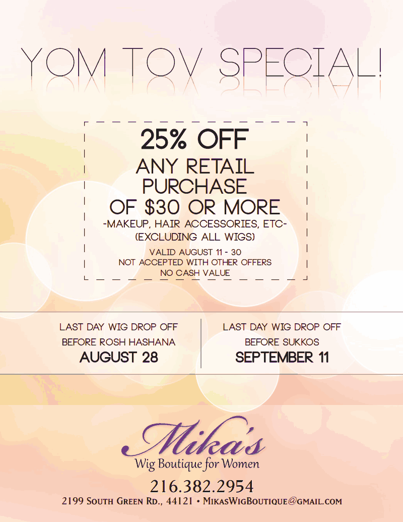 Jewel Wigs Pre-Yom Tov Sale at Mika’s