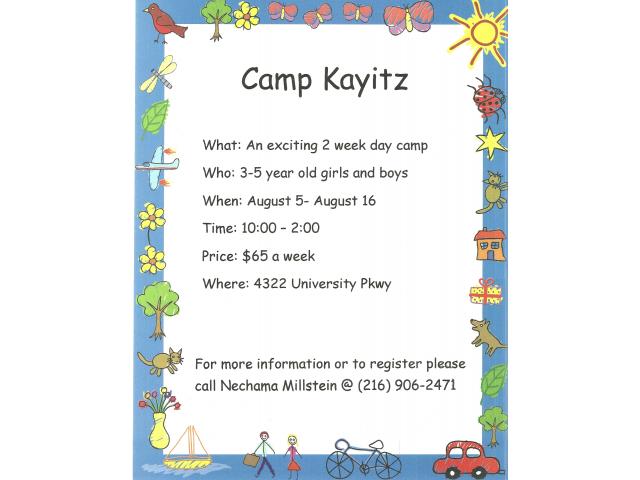 Camp Kayitz – 2 Week Day Camp Starting August 5th