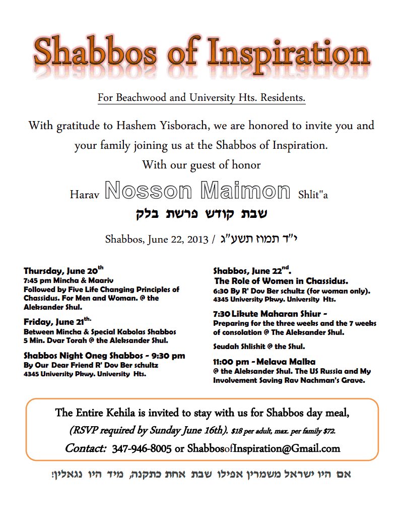 Beachwood – UH, Shabbos of Inspiration With Harav Nosson Maimon