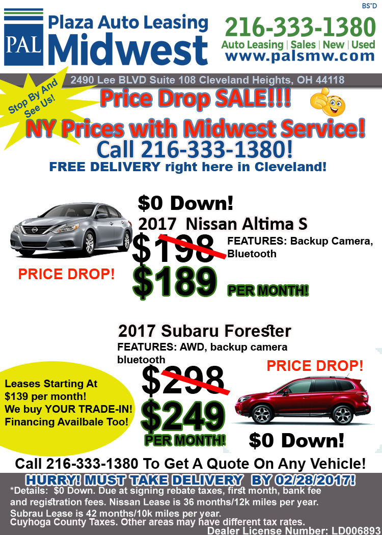 Last Minute Price Drop Deals From Plaza Auto Leasing Midwest Just Announced! February 25, 2017 Leave a Comment
