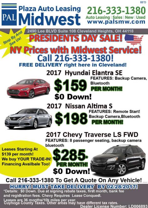 Plaza Auto Leasing Midwest – 3 Amazing Deals! Plus, 3000 Vehicles Available for Immediate Delivery! May 17, 2017 Leave a Comment