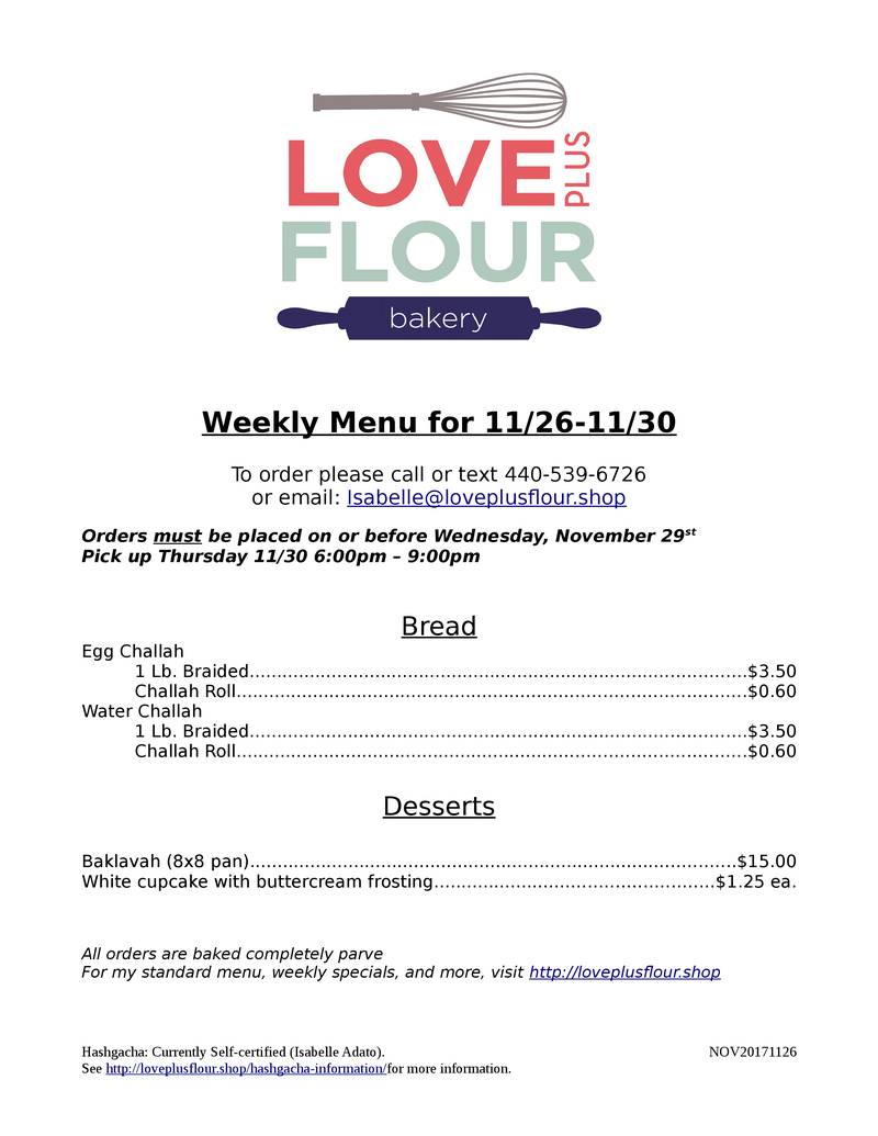 Thank you to everyone who ordered last week. This week I’m putting a popular item from the chagim back on the menu: baklavah! There’s a story to go along with this recipe, which I’ll share during the week. Remember to visit http://www.loveplusflour.shop for more details, to sign up for weekly emails, and more. I hope to see you this week. Love (plus flour), Isabelle Adato