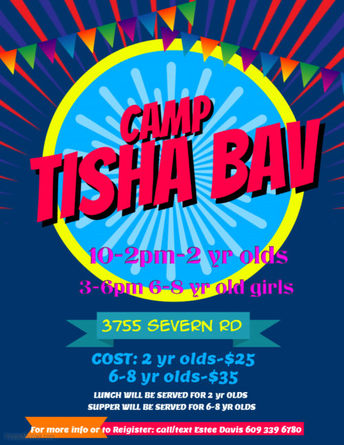 Camp Tisha B’Av! Sessions Available for 2 Year Olds and 6-8 Year Olds! Register Now!
