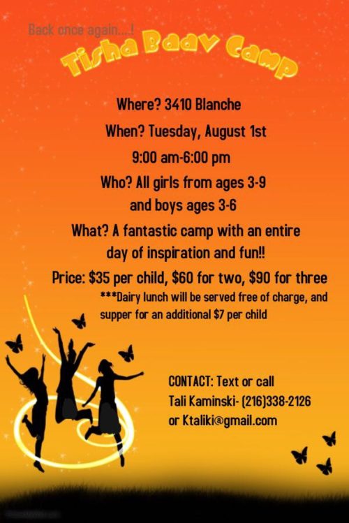 Tisha B’Av Camp for Girls AND Boys is Back!