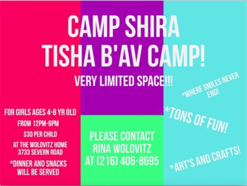 Camp Shira Tisha B’Av Camp! For Girls 4-8!