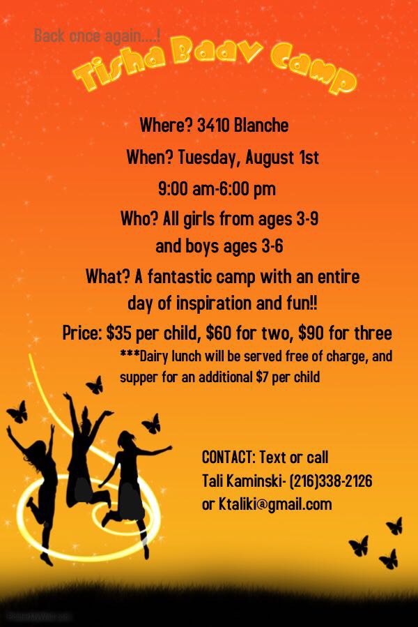Camp Tisha B’Av! Sessions Available for 2 Year Olds and 6-8 Year Olds! Register Now!
