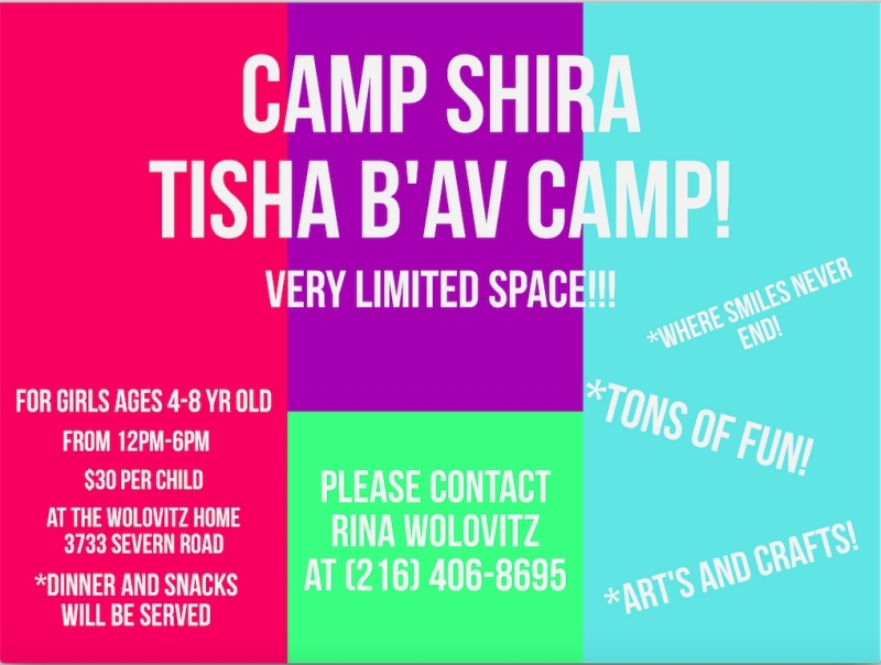 Camp Shira Tisha B’Av Camp! For Girls 4-8!
