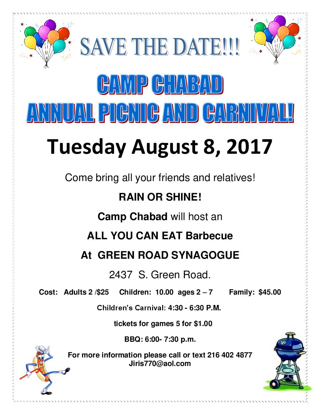 Camp Chabad Annual Picnic and Carnival! This Tuesday! Aug. 8th