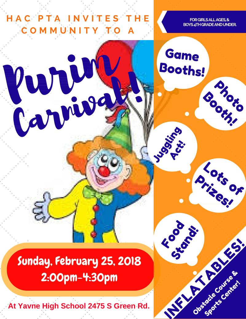 HAC Purim Carnival! Join the Fun! Sunday, Feb. 25th