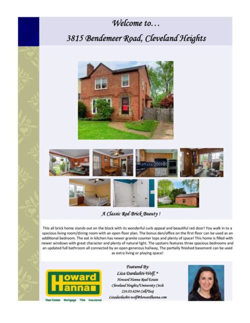 Classic Beautiful Home for Sale in the Heart of Cleveland Heights! Welcome to 3815 Bendemeer!