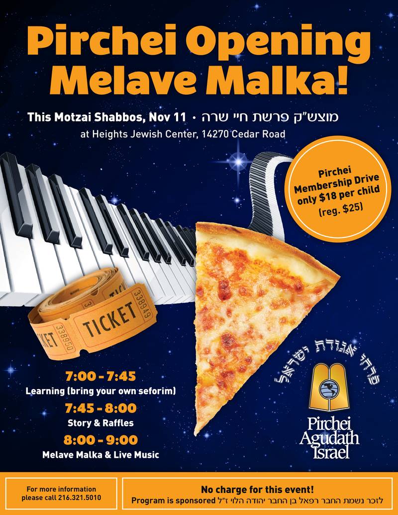 Pirchei Opening Melave Malka this Motzei Shabbos!