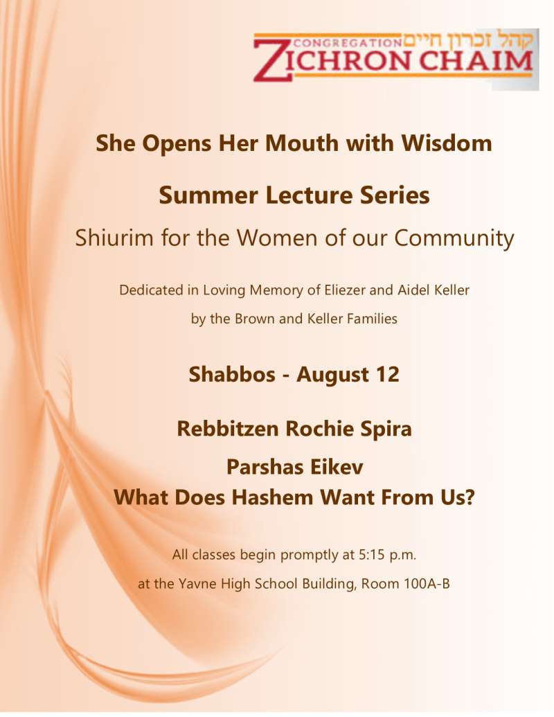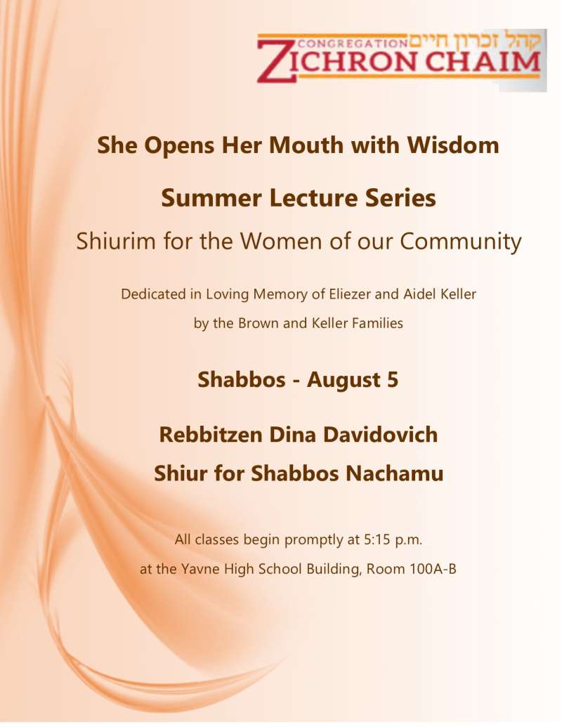 “She Opens Her Mouth With Wisdom” – Shabbos Nachamu Shiur by Rebbetzin Dina Davidovich