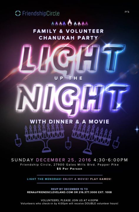 Friendship Circle “Light Up the Night” Family & Volunteer Chanukah Party, 12/25