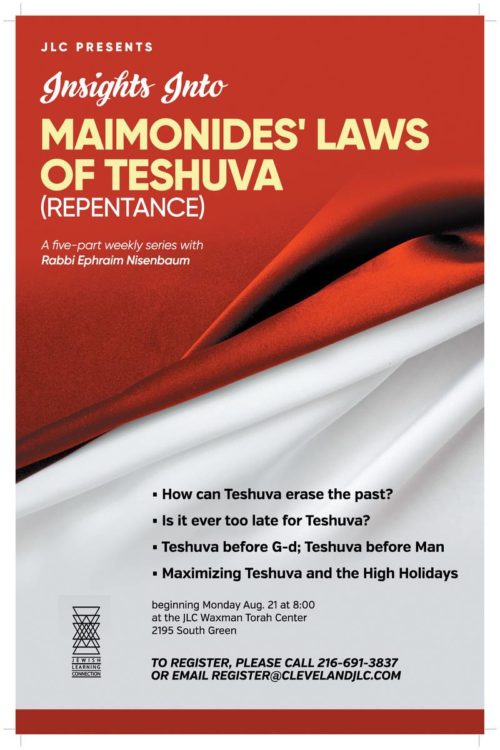 “Insights Into Maimonides’ Laws of Teshuva” – a Five-Part Series with Rabbi Ephraim Nisenbaum