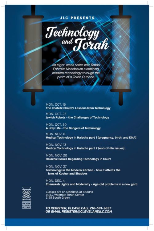 “Technology and Torah” – a JLC Series You Don’t Want to Miss, Mondays Starting Oct. 16