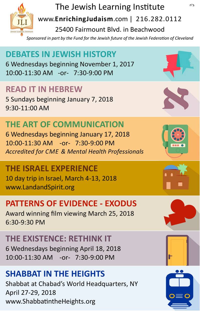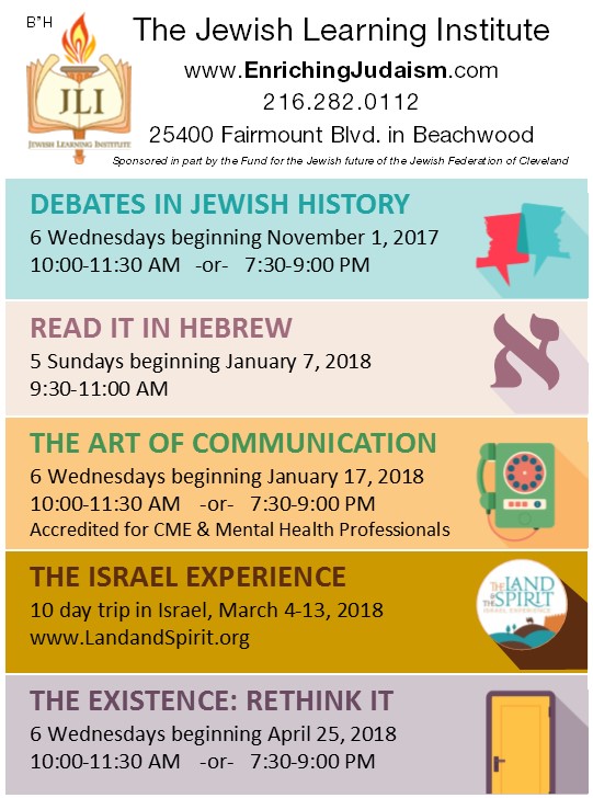 Jewish Learning Institute – Mark Your Calendar for Upcoming Events! September 30, 2017 Leave a Comment