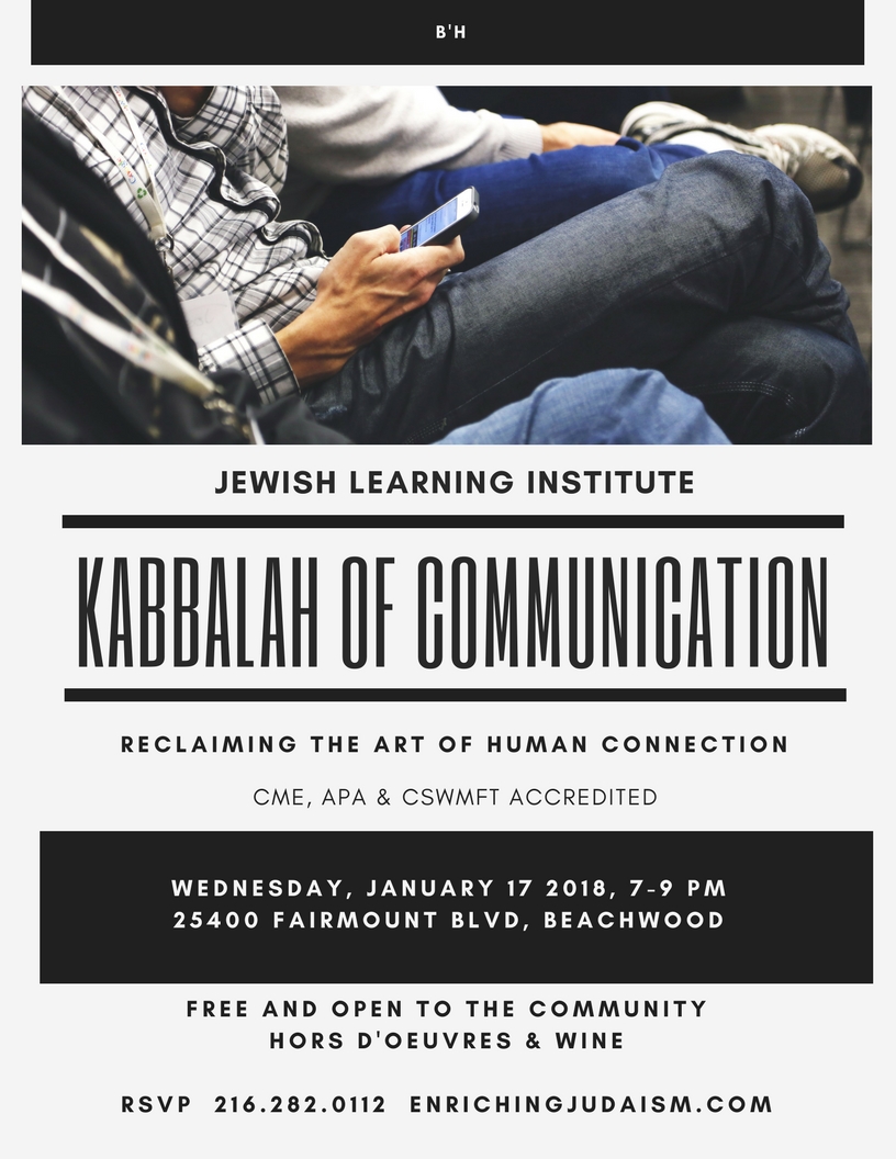 Jewish Learning Institute Presents “The Kabbalah of Communication” – Wednesday, Jan. 17 January 4, 2018 Leave a Comment